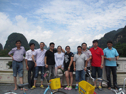 在全体员工的不懈努力下,前不久公司顺利通过了实验室资质认定,为了回馈员工们的辛勤付出,公司分批组织职工旅游。日前,为期四天的桂林·阳朔双飞之旅启程了。早闻“桂林山水甲天下,阳朔堪称甲桂林”,大家对这次桂林之旅充满了期待。 几经周折我们终于在6月13日的凌晨安全抵达了桂林。6月正值桂林雨季,早晨醒来,雨滴便开始拍打窗户,仿佛要叫醒每一位游客,赶快去欣赏烟雨的桂林,梦幻的漓江。早餐后,我们带上雨伞,冒雨走进桂林。不论是坐在车上,抑或是站在叠彩山的山顶上,映入眼帘的都是大大小小的山丘,他们平地而起,郁郁葱葱,形状各异,小巧可爱。如果说现代化大都市是高楼林立的话,那桂林就是青山林立,其中最著名的就是桂林城标象鼻山了,可惜雨太大我们无缘一睹它的风采。不过站在叠彩山的明月峰上,整个桂林尽收眼底,让我们深切体会到了桂林“千山环野立,一水抱城流”的独特魅力。随后,山水间穿越奇幻空间的桂林山水表演,缓和了大家一天来的起伏心情。 第三天依旧是瓢泼的大雨,整个漓江全线封航,无奈我们只能驱车前往阳朔。到达阳朔后我们首先来到了桂林最大的溶洞——银子岩,洞内有大量奇麓多姿、玲珑剔透的石笋、石乳、石柱、石幔、石瀑,构成了音乐石屏、瑶池仙境、雪山飞瀑“三绝”和佛祖论经、独柱擎天、混元珍珠伞“三宝”等景点,栩栩如生,形象逼真。接着我们游览了天籁·蝴蝶泉景区,欣赏了侗族、苗族同胞带来的原汁、原味、原生态的歌舞表演。 最后一天,雨终于停了,太阳羞答答的露了半张脸。好天气让大家的心情顿时愉悦了,我们骑着单车游览了十里画廊景区,更幸运的是我们还乘船预览了漓江,虽然漓江的水变得混不见底,但并不影响我们欣赏风景的心情,不论是“骆驼过江”、“青蛙出洞”、“八仙过江”,还是“九马画山”、“杨堤仙境”、“童子拜观音”,真是想什么,像什么;不想不想,越想越像。 四天的旅程很快就结束了,尽管多是雨天,但我们看到了不凡的山水桂林,更见到了风雨之后天空美丽的彩虹。正印证了那句“塞翁失马焉知非福”,这次旅程,让我们能够以更平和的心态去面对困难和艰辛,以更大的勇气和信心迎接未来。