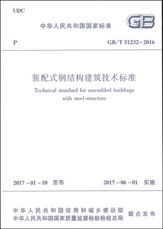 国家标准《装配式钢结构建筑技术标准》(GB/T51232-2016)已经国家住建部批准,自2017年6月1日起实施。 装配式钢结构建筑是指建筑的结构系统由钢部(构)件构成的装配式建筑。钢框架结构是指以钢梁和钢柱或钢管混凝土柱刚接连接,具有抗剪和抗弯能力的结构。钢框架-支撑结构是指由钢框架和钢支撑构件组成,能共同承受竖向、水平作用的结构,钢支撑分中心支撑、偏心支撑和屈曲约束支撑等。压型钢板组合楼板是指压型钢板上浇筑混凝土形成的组合楼板。 该标准的主要技术内容有:1.总则;2.术语;3.基本规定;4.建筑设计;5.集成设计;6.生产运输;7.施工安装;8.质量验收;9.使用维护。 该标准适用于抗震设防烈度为6度到9度的装配式钢结构建筑的设计、生产运输、施工安装、质量验收与使用维护。装配式钢结构建筑应遵循建筑全寿命期的可持续性原则,并应标准化设计、工厂化生产、装配化施工、一体化装修、信息化管理和智能化应用。装配式钢结构建筑应将结构系统、外围护系统、设备与管线系统、内装系统集成,实现建筑功能完整、性能优良。