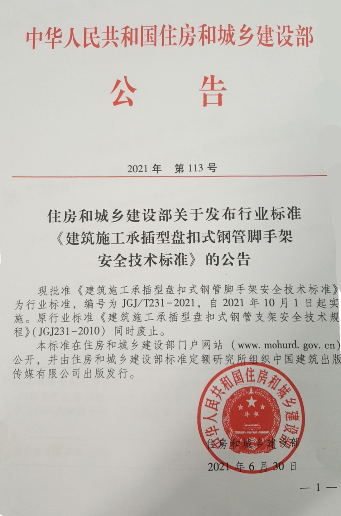 | 公司参编的《建筑施工承插型盘扣式钢管脚手架安全技术标准》已获批 | ||